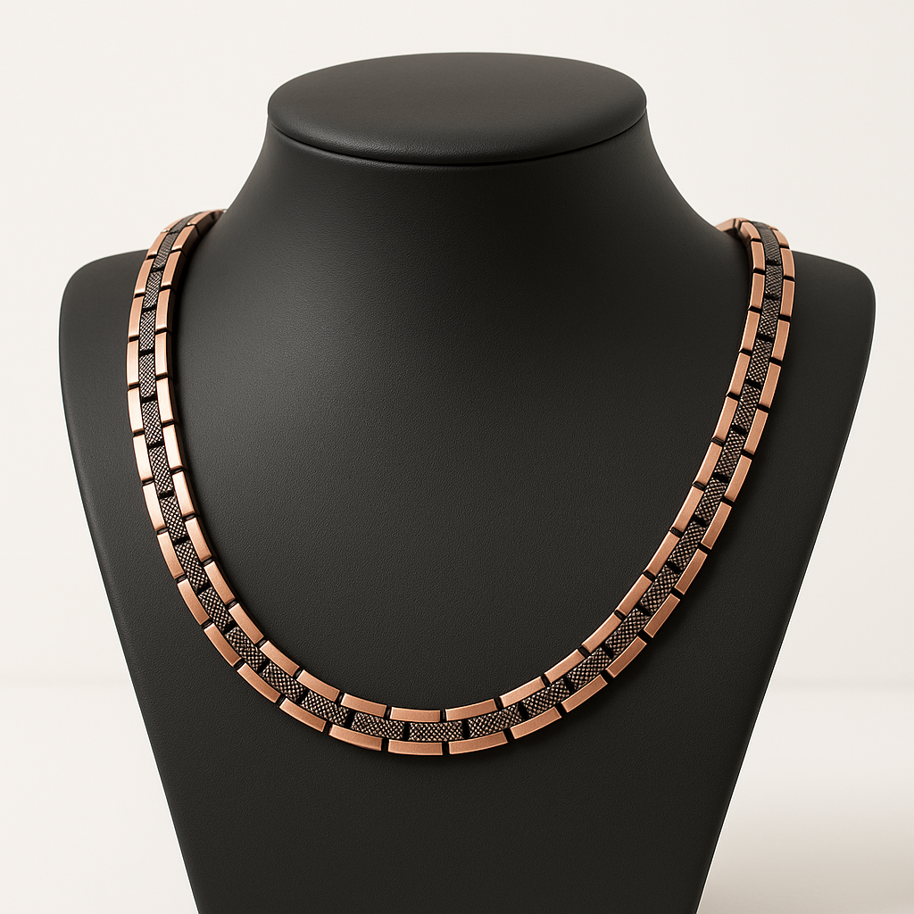 Eine Magnethalskette kombiniert natürliche Magnetkraft mit reinem Kupfer, um den Energiefluss im Körper zu unterstützen.